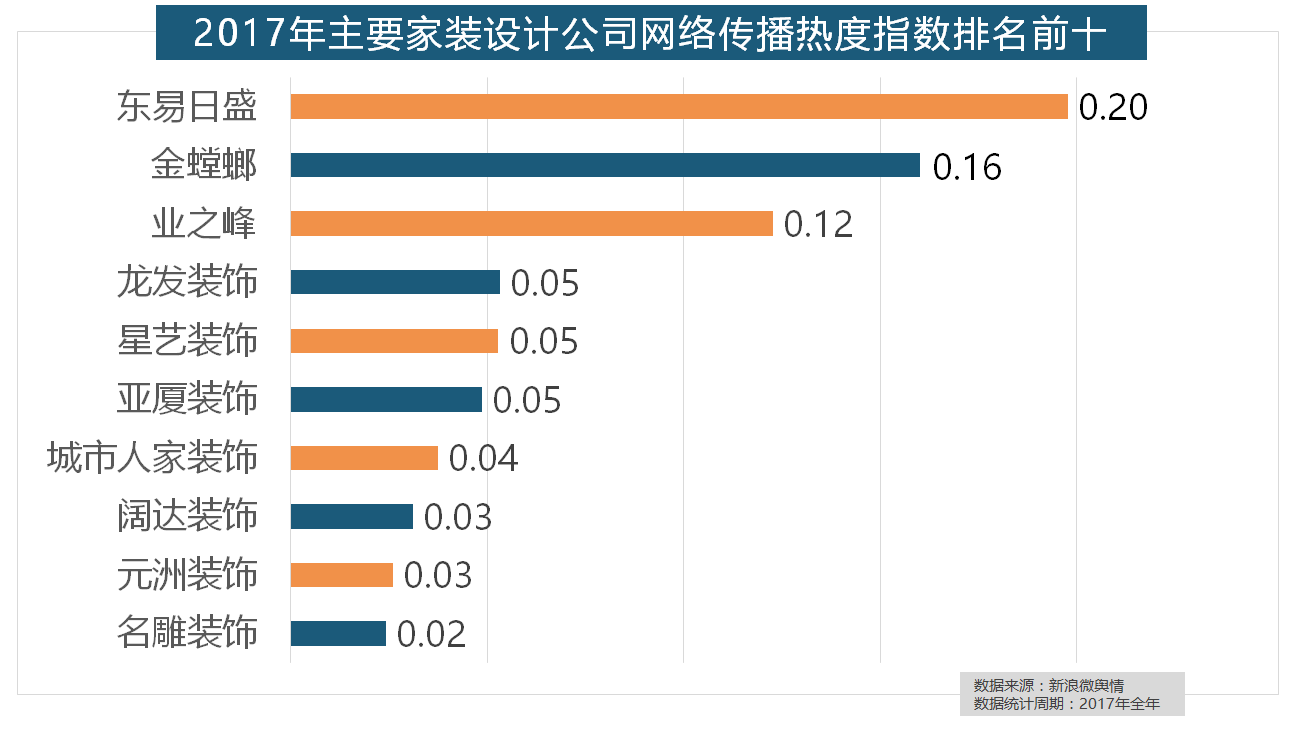 伴跟着我国度拆市场的繁荣,一批具有必然规模的家拆设想公司也纷纷出现。据新浪微舆情对2017年我国次要家拆设想公司大数据阐发显示,东易日盛正在过去的一年中收集热度指数最高,金螳螂、业之峰、龙发粉饰、星艺粉饰紧随其后。此外,名雕粉饰、亚厦粉饰、城市人家粉饰、阔达粉饰、位列年度家拆设想公司热度排行榜六至十位。